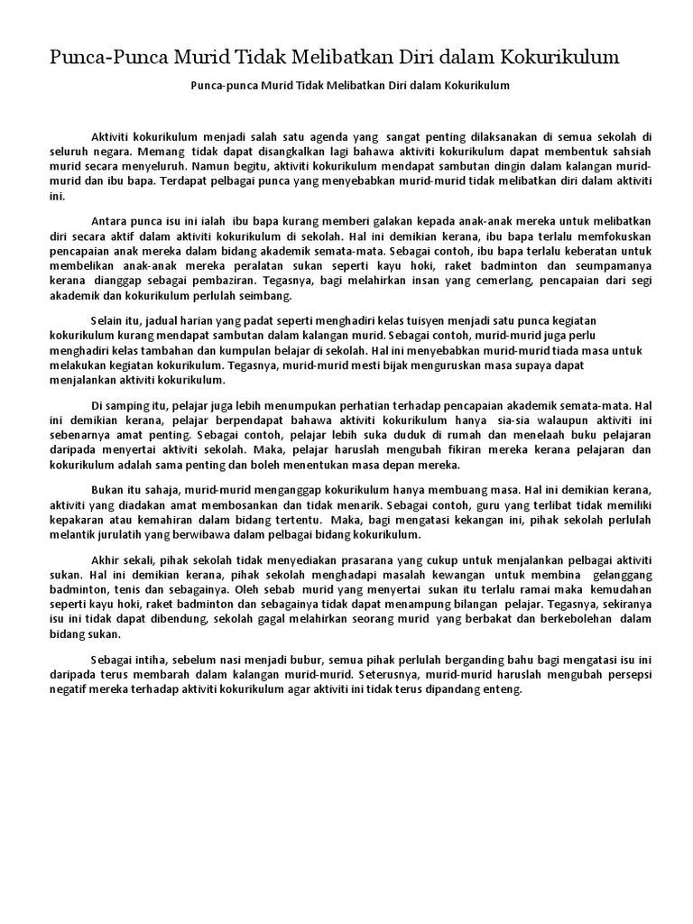 Punca Punca Pelajar Tidak Berminat Untuk Menyertasi Aktiviti Kokurikulum Pdf