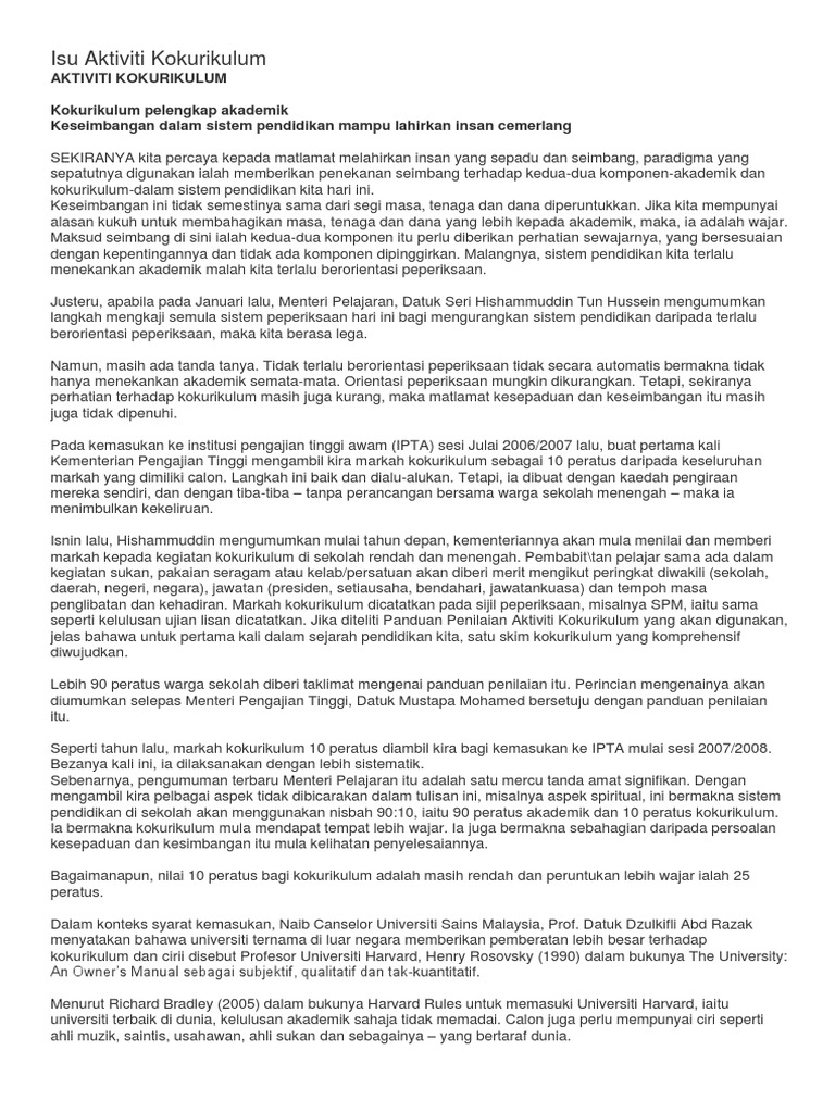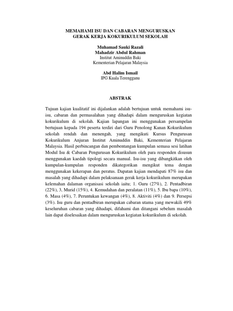 Jurnal Memahami Isu Kokurikulum Di Sekolah Pdf